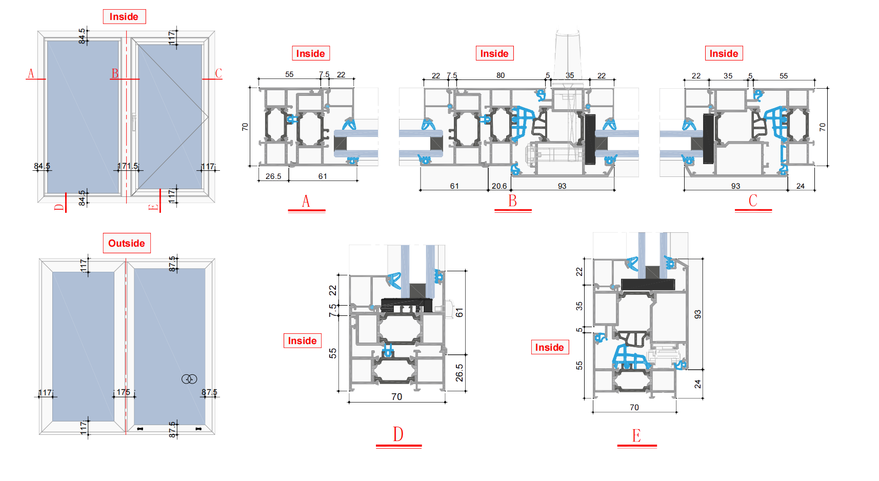 This series offers versatile opening options to suit different user preferences — including handles positioned on the frame or sash, as well as a crank-operated design popular in Australia and also increasingly favored in North America, especially for homes requiring easy operation on high or out-of-reach windows.