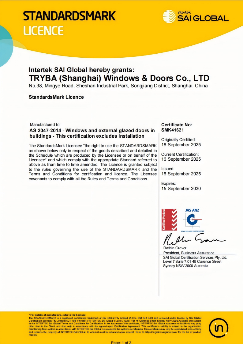 The TW70 aluminium tilt & turn windows from TRYBA are AS2047 certified and have passed rigorous performancetesting.