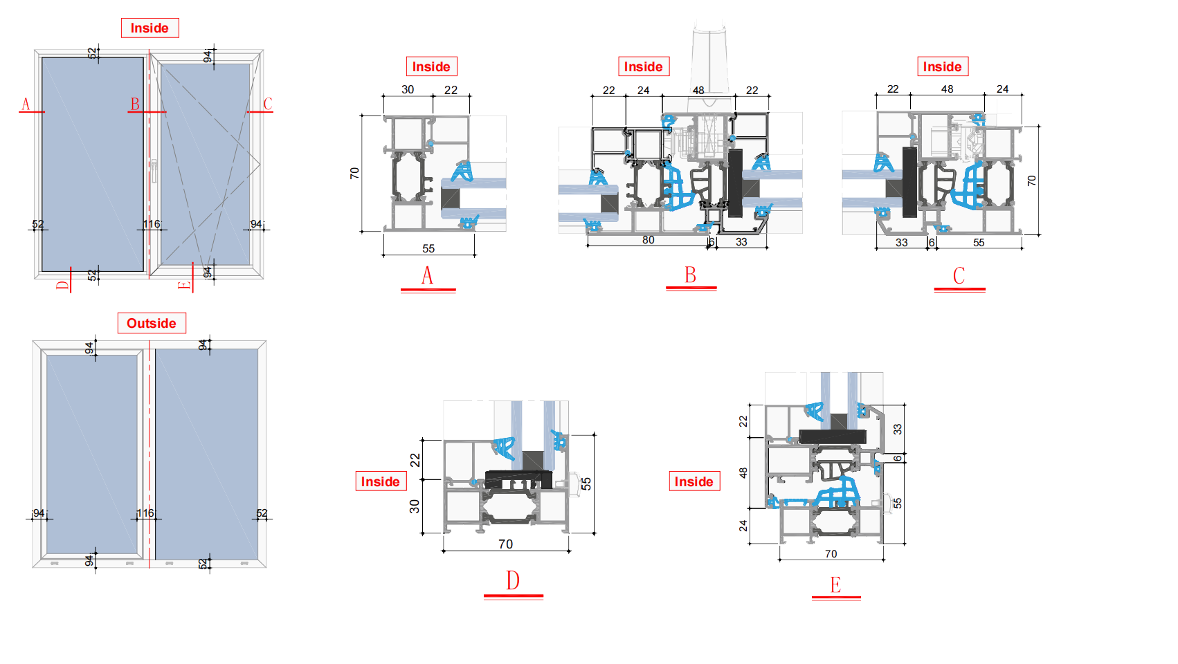 The sealing system combines automotive-grade EPDM gaskets with a three-layer sealing structure; Corner-seal injectionuses the German WÜRTH brand to guarantee durable, leak-free joints. Fitted with the German GU hardware system to enhance reliability and product life.